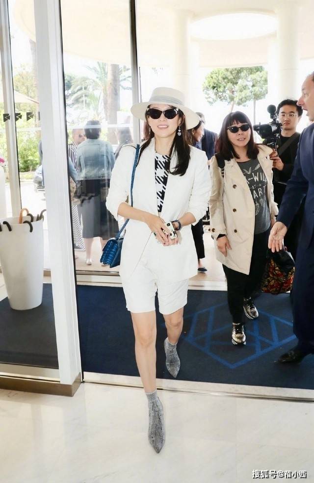 接下来是章子怡的另一套装扮——西服与短裤的搭配。简洁大方的风格适合夏季穿着,翻驳领的设计突出了都市女性的干练与优雅,能够巧妙地拉长颈部线条,显得更加高挑。白色西服是经典中的经典,特别衬托女性的肤色,有了西服的加持,气场立刻强大起来。西服的版型宽松利落,设计考究,融合了复古与现代时尚元素,即便是小个子也能完美驾驭。